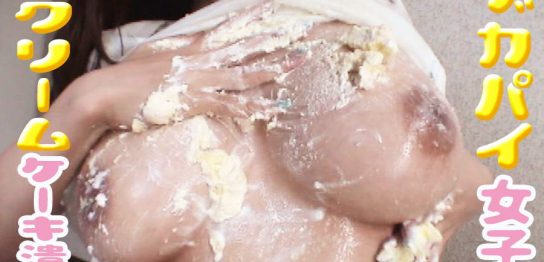 ※保護つきコンテンツですデカパイの女の子が目の前に置かれた生クリームケーキをペロ