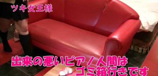 制服ツキ女王様へピアノの練習台として運ばれてきたM男君。彼の竿と玉は縄や紐で固定